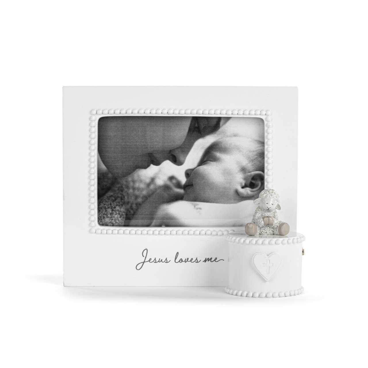 The Jesus Loves Me Cream Lamb Musical Frame - 8x7in blends imagery and music to create something truly special — unique-to-the-market keepsakes. Playing a variety of classic children’s tunes, these frames offer faith-forward messaging perfect for baptism and christenings, or just to decorate a little love’s nursery with something tender and meaningful.