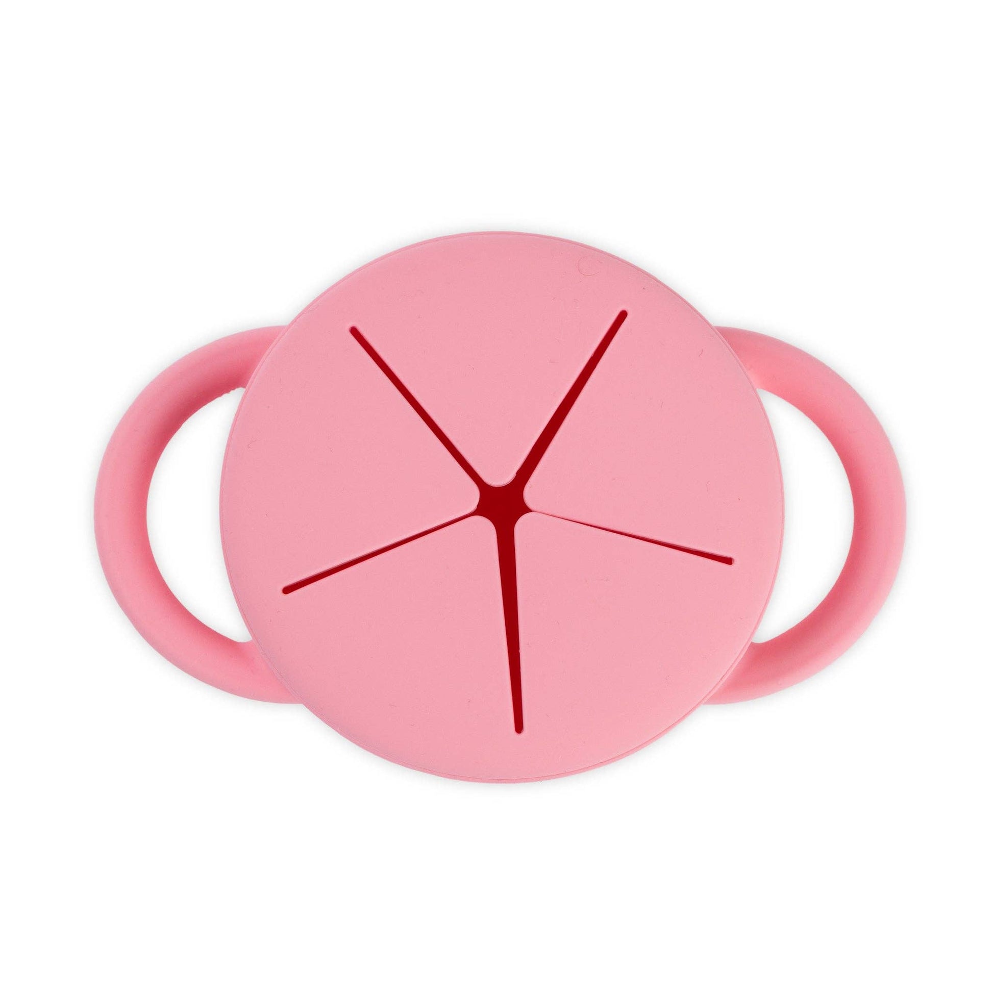The Happy Snacker is a first-of-its-kind two-piece silicone snack cup with a mess-proof snap-tight lid and soft silicone opening so little hands can easily access food and prevent spills. Designed with easy-grip handles, it fits in car seats and stroller cup holders.