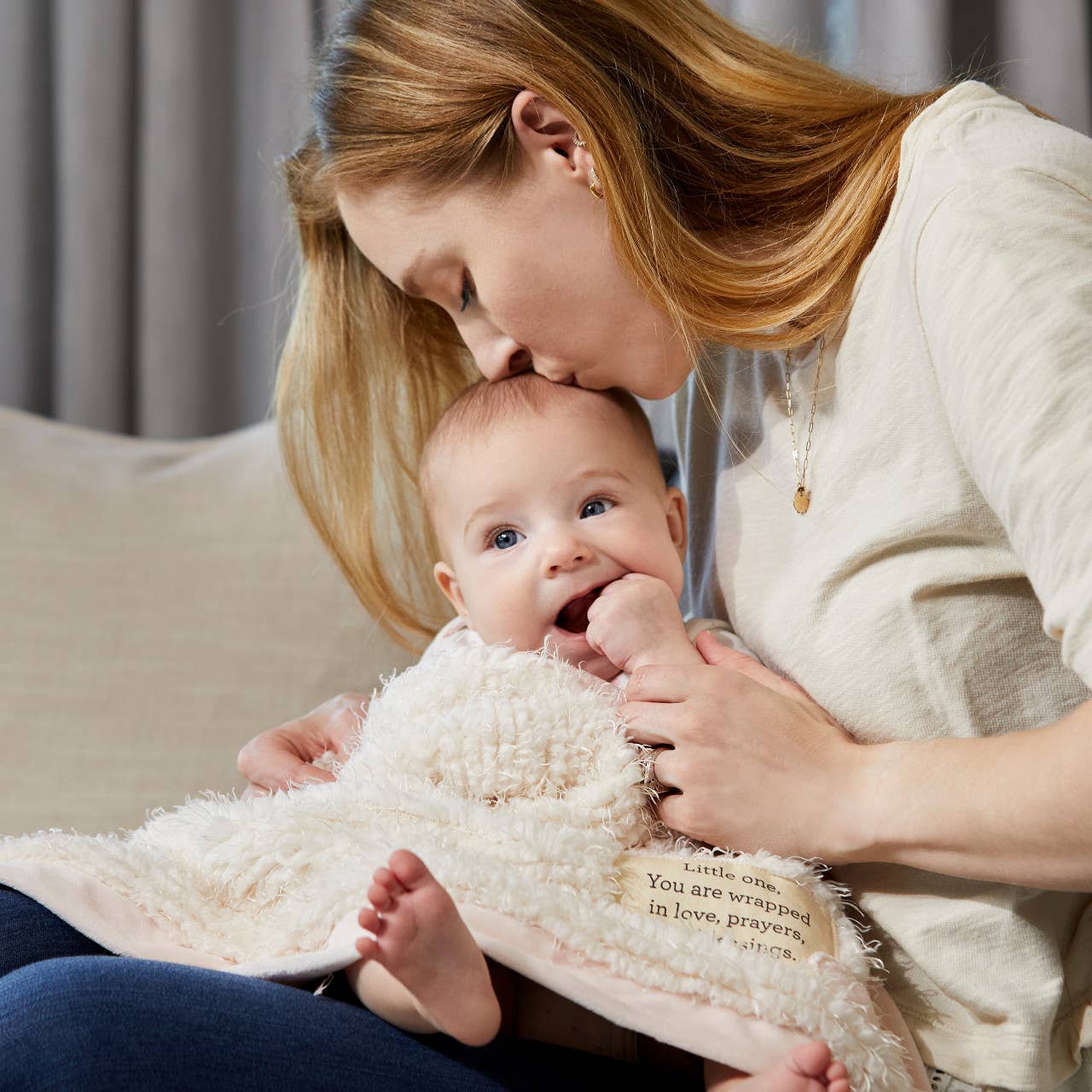Cuddle up with the wrapped prayer blanket - pink and you'll be snug as a bug in a rug (as the saying goes). This baby blanket will be your little one's new naptime must-have.